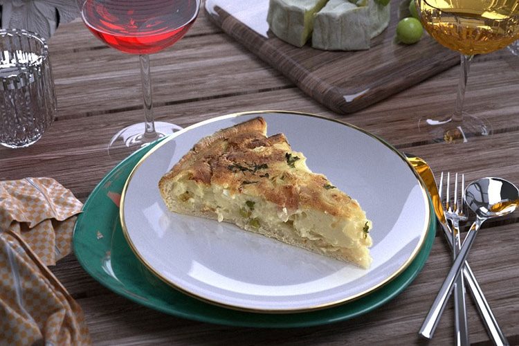 Für den Teig: 250 g Mehl, Salz, 1 Eigelb, 125 g kalte Butter, Mehl (zum Ausrollen) Für den Belag: 200 g gekochter Schinken, 450-500