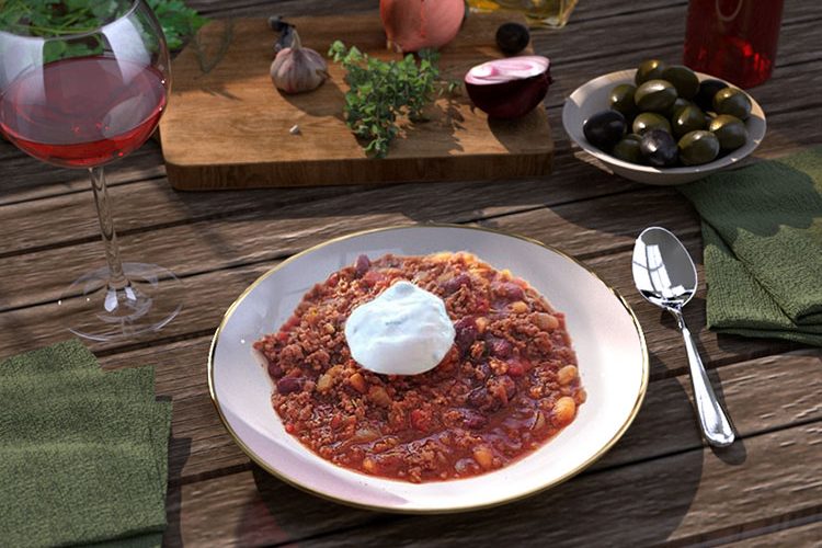 1/2 (1) Zwiebel, 1 (2) El Pflanzenöl, 150 (300) g Hackfleisch, Salz, Pfeffer, 400 (800) g rote Bohnen (aus der Dose mit Flüssigkeit gewogen), 200