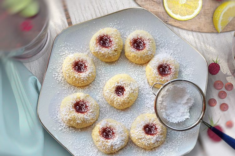 175 g weiche Butter, 100 g Puderzucker, Saft und Schale von 1 Bio-Zitrone, 4 Eigelb, 1 Ei, 200 g Mehl, 100 g geschälte gemahlene