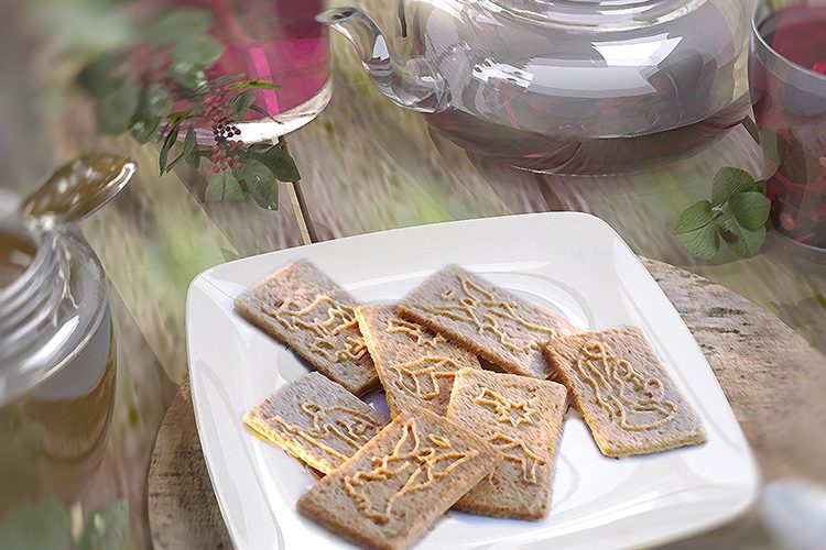 350 g Mehl, 250 g Butter, 80 g Zucker, 1 P. Vanillezucker, 100 g Honig, 150 g gemahlene abgezogene Mandeln, 2 Tropfen Mandelaroma, 1