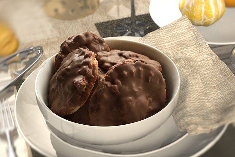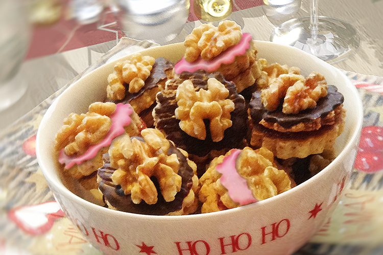 Für den Teig: 50 g ZartbitterSchokolade (70 %), 100 g Puderzucker, 100 g geschälte gemahlene Mandeln, 100 g gemahlene Haselnüsse, 60 g Marzipanrohmasse, 50