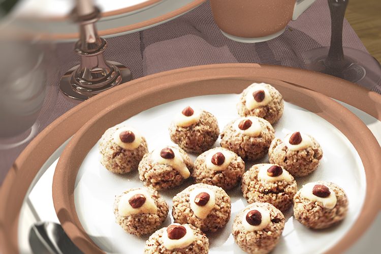3 Eiweiss, 250 g Puderzucker, 1 P. Vanillezucker, 1 Tl gemahlener Zimt, 300 g gemahlene Haselnüsse, 60 g ganze Haselnüsse 1. Eiweiss steif schlagen, durchgesiebten