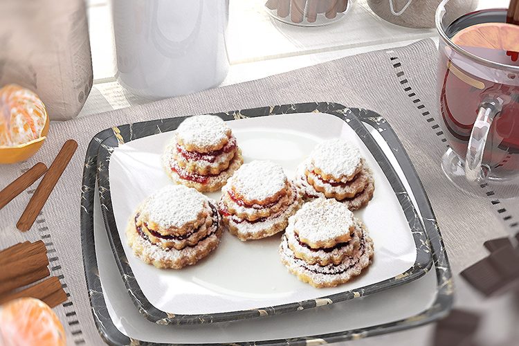 350 g Mehl, 150 g Zucker, 1 P. Vanillezucker, abgeriebene Schale von 1 unbehandelten Zitrone, 100 g gemahlene abgezogene Mandeln, 250 g Butter, 1